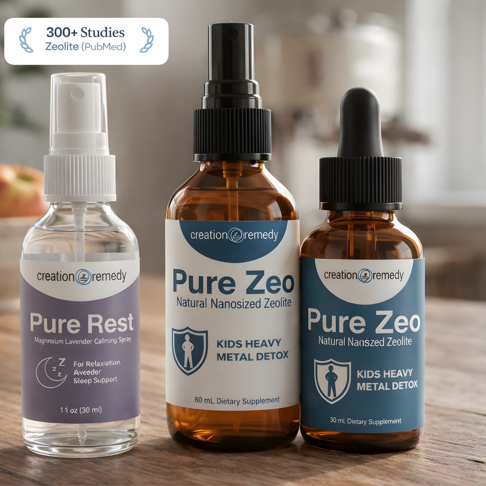 Spray (nanosized zeolite): Go deeper. Small enough to pass through cellular membranes and reach metals already stored in tissues. Together, they provide gut-level AND cellular-level detox.